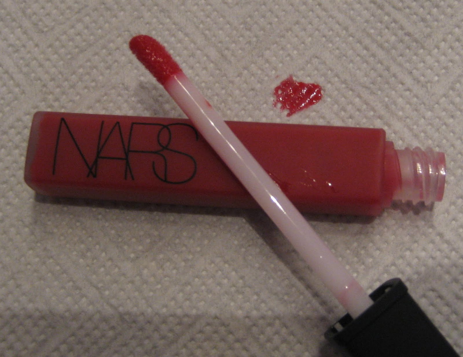 Endlich besitze ich auch ein Produkt von der Kult-Celebrity-Marke NARS. In Madrid in einem der „ElCorteInglés“-Kaufhäusern war ein NARS-Counter und da musste ich zuschlagen. Eigentlicih wollte ich mir das hochgelobte „Turkish Delight“ Gloss kaufen, aber das stand mir leider gar nicht und setzte sich total in den Lippenfältchen ab. Aber der Gloss „Scandal“ hat es mir total angetan! In der Verpackung sieht er tomatenrot aus, aber es ist ein pinkstichiges rot. Und ich finde die Farbe sehr alltagstauglich, also nichts mit „Scandal“ :)!