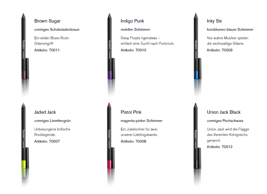 Ohh, da sind ja tolle Farben dabei, gerade bei den Kajalstiften! Aber mir ist das zu hochpreisig, da komme ich gar nicht in Versuchung.